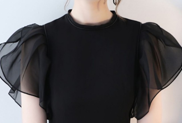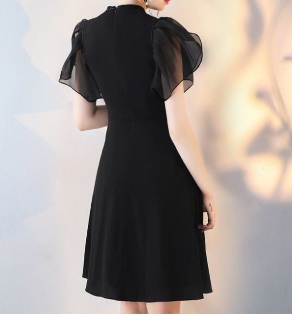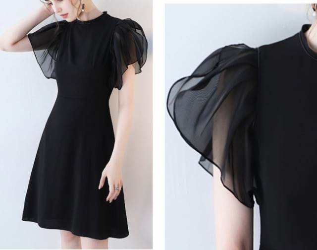 袖フリルがかわいいエレガントなひざ丈ワンピース☆