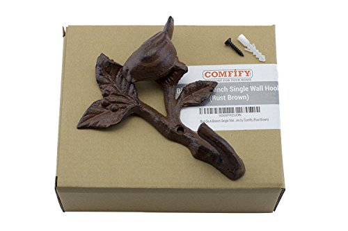-. Title : Bird On A Branch Single Wall Hook / Hanger - Metal, Heavy Duty, Rustic, Vintage, Recycled, Decorative Gift Idea - 4.7x1.8x6.3" - With Screws And Anchors by Comfify (Rust Brown)