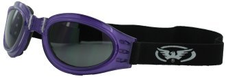 -. Title : Purple Padded Motorcycle Goggles that Fold Smoke Lens Includes Pouch
