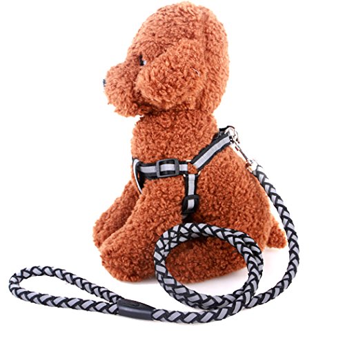 Dog Reflective Rope with Polyester Harness Strap Vest Collar Leashes For Night Walking Description: Material:Polyester .Solid and Durable.Wear Comfortable for Your Dog Color:Black.Blue Size: M:47.24' long round rope chain, 0.78' wide and 12.59'-18.89' adjustable shoulder straps L:47.24' long round rope chain,0.98'wide and 14.14'-21.65'adjustable shoulder straps Easy to Take On and Off the Leash Handle and Harness Suit for Your Dog Walking,Hunting In the Evening Adjustable Strap Allows for Comfortable Seating and Standing Package Include : 1*Dog Leash Harness 0