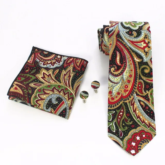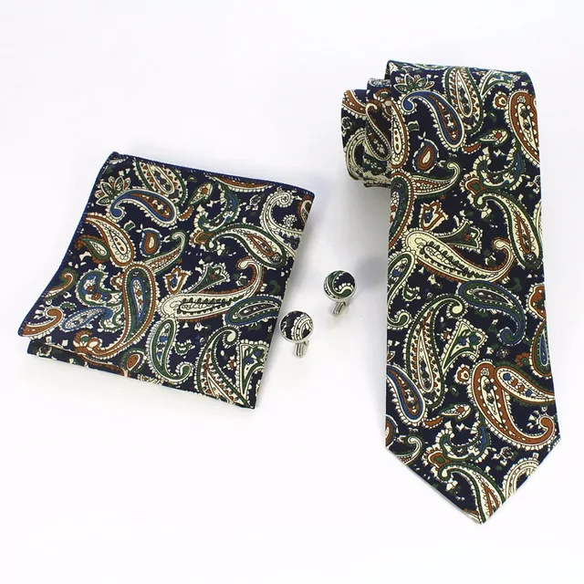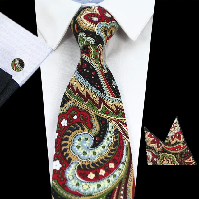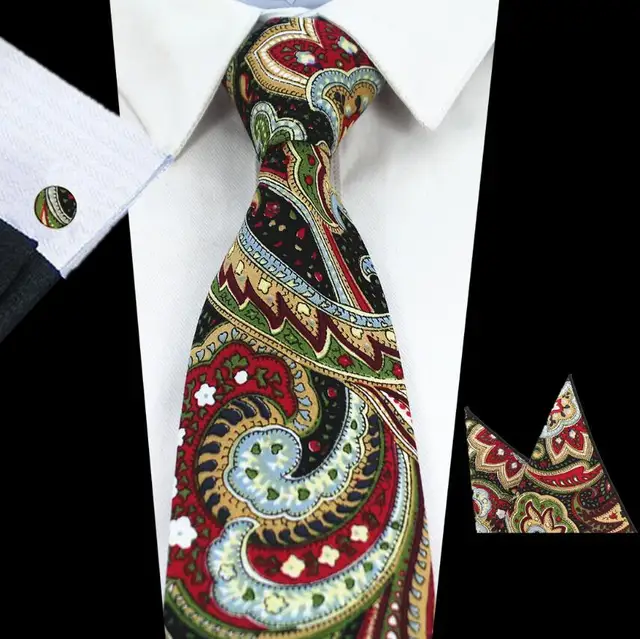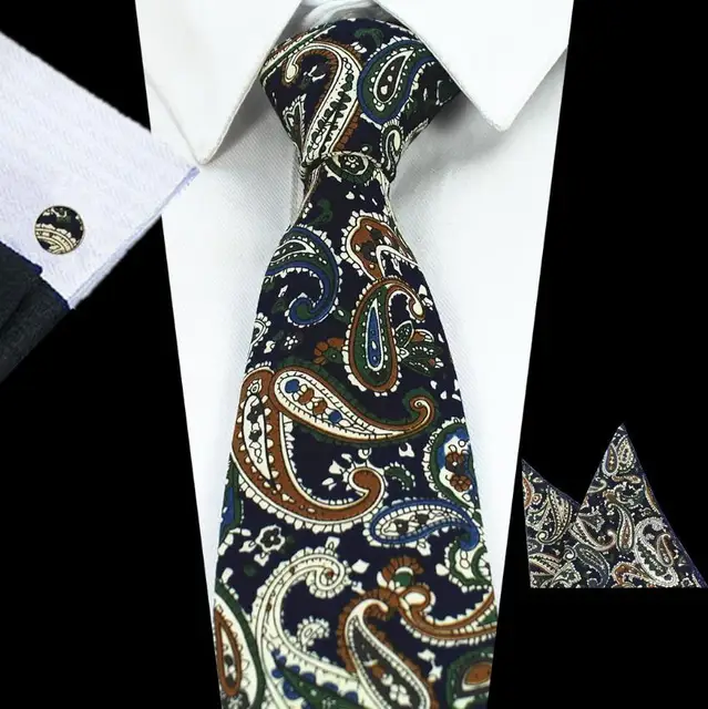 | [해외]JEMYGINS 품질 남성 코튼 넥타이 페이즐리 넥타이 포켓 스퀘어 커프스 세트 손수건 정장 웨딩 비즈니스 파티 손수건 |