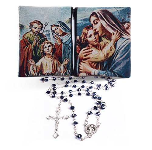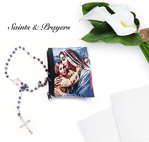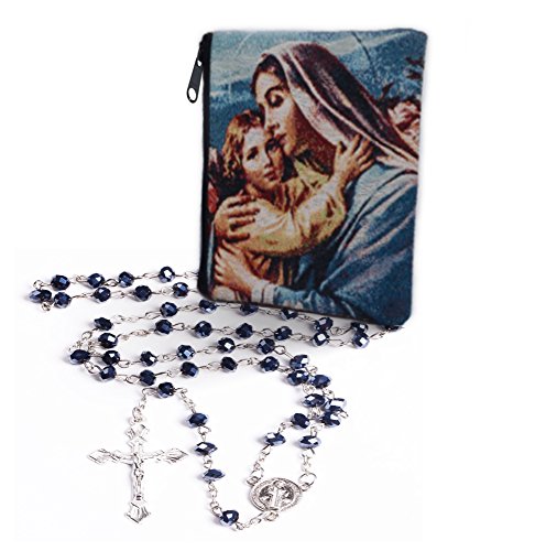 2 in 1 SET Rosary INCLUDED Rosary Case Pouch Deep Blue Crystal Beads Rosary Catholic Necklace Medal & Crucifix