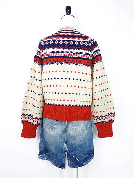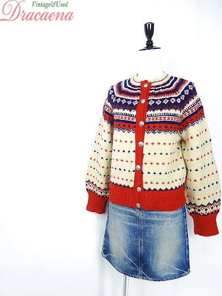 Ladies ブランド カラーオフホワイト・赤・紺 メール便不可 コンディション★★★ 素材ウール 表記サイズ記載なし スタッフコメントフロント中央下付近右に小さなシミあり 実寸サイズ 着丈 54 cm 身幅 48 cm 袖丈 73 cm ※ウエスト・ヒップ以外は平置き採寸【code】#c
