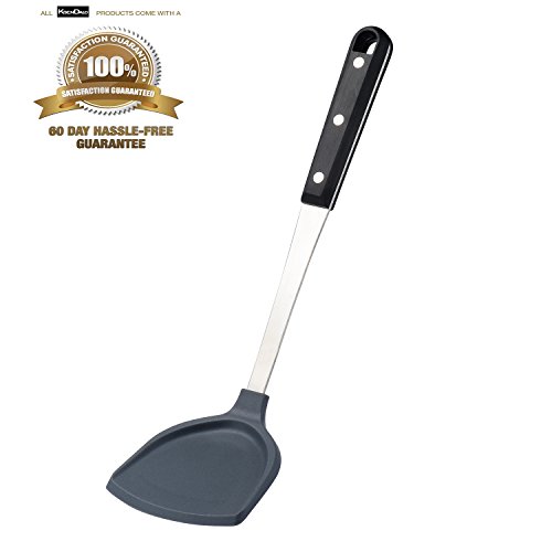 Thick Blade with thin edge turner - Great for eggs, burgers, pizza and pancakes ? Features Food Grade Silicone Dishwasher Safe Reinforced with Flex Technology Stainless Steel Handle