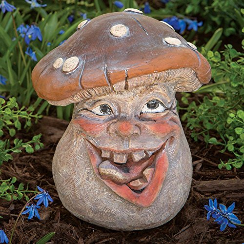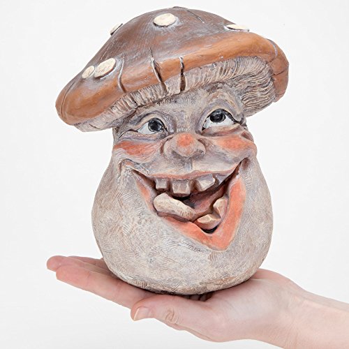 Bits and Pieces - Mushroom Man Smiley Face Polyresin Garden Statue 8 1/2 Inches Tall - Perfect Ornament For Your Garden, Porch or Patio