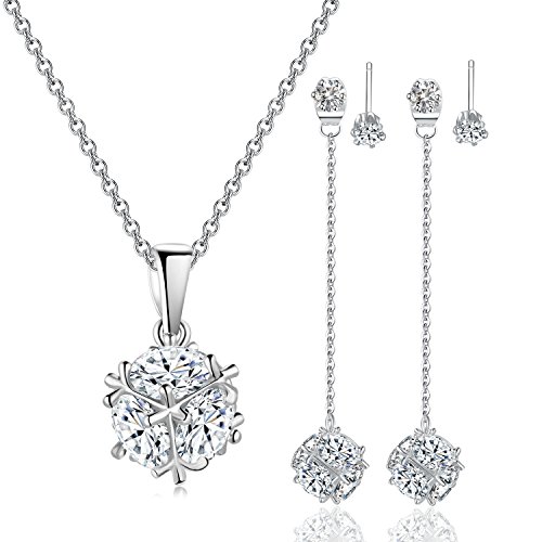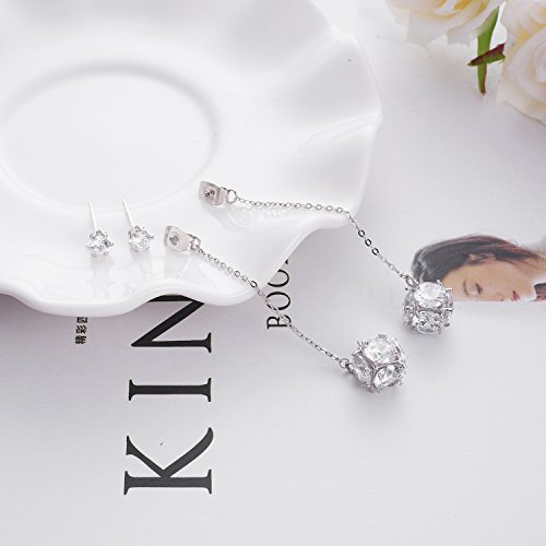 -. Feature : Material: 3A cubic zirconia/18K platinum plating chain/925 sterling silver ear needle,hypoallergenic. / Size: 1.Necklace Length:40cm(15.74inch)-45cm(17.71inch).2. Earring fixed Length: 6cm(2.36inch).Surprisingly, when you remove the long chain tassel Pendant of your earrings, it immediately becomes a small, exquisite round cut cz stud earrings. / The cubic zirconia symbolizes success and victory, with this blessing, anything, if you believe it ,then you can do it. / This set of jewelry set is elegant and classy, it's absolutely the best choice as a Thanksgiving Day and Christmas gift for mom,wife,girlfriend and friends. / The necklace and earrings were placed in a customized and beautiful jewelry gift box, so if you want to send a gift to your grandmother, your mother, your sister, your friends, your lover, your girlfriend in Mother's day, Valentine's day, Thanksgiving, Christmas, Birthday, Anniversary, Wedding, it will make you satisfied.