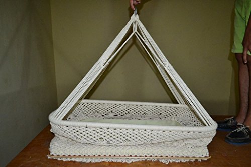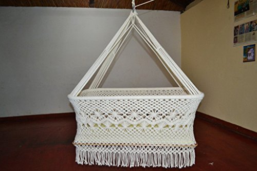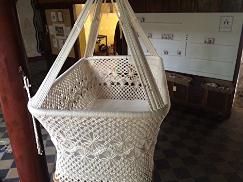 Studio : Mission Hammocks Publisher : Mission Hammocks Binding : Baby Product Product Description Mission Hammocks helps support persons with disabilities in Nicaragua. Our hanging bassinets are made in a workshop that employs blind, deaf, and physically disabled people who make some of the best hanging cradles on the planet. We make the order just for you! Color(s): Off-White Dimensions: 33.8" L, 20.5" W, 44.1" H Product Weight: 9.5 pounds Capacity: 75 pounds When you order your handmade crib from us, it's 100% diligently handwoven - it takes around 5 days to make your hanging crib from scratch. The cradle swing does not come with hanging hardware, tree straps or stand, but it's pretty easy to hang from one point. The baby cradle swing does come with padding for the bottom, and you can add any other bedding on top of that. Because you're buying our bassinet swing direct from our workshop, you're paying half of what you would pay buying this through a boutique store. Looking for a unique and AMAZING baby shower gift? She'll be amazed by this handmade crib! It's also great on the go because you can fold the hanging bassinet up and pack it anywhere, or move it to any room in the house where you have a safe place to hang it. **We recommend that you don't hang the hanging cradle too high off the ground depending on your installation skills** 0