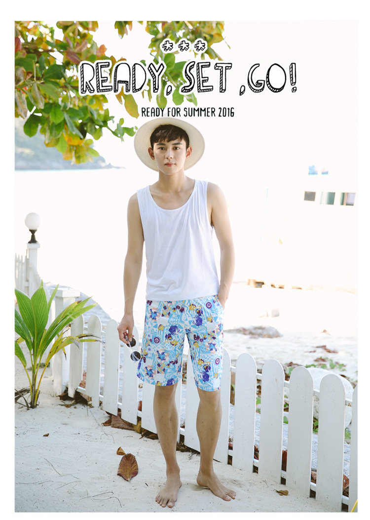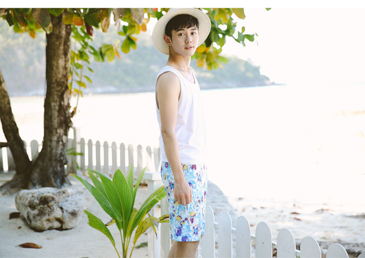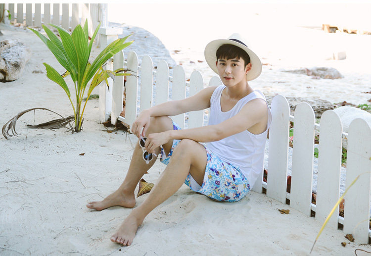 夏季新款男士沙滩裤清新印花男士时尚运动休闲度假沙滩游泳裤