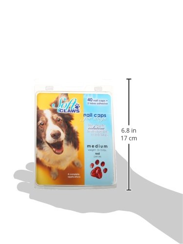 Studio : PetEdge Dealer Services Publisher : PetEdge Dealer Services Binding : Misc. Product Description Canine soft claws nail caps take home kit helps customers protect their homes against destructive scratching by applying soft claws nail Caps to their pets' nails. A great add-on to your routine professional nail care. These easy-to-apply caps last 4-6 weeks and will not interfere with pet's normal behavior. The Canine starter kits are ideal for in-shop use. Canine take-home kit includes 40 nail caps, adhesive, 3 applicator tips and instructions. Available in medium size and red color. Comes with 10-15-pounds weight, examples: boston terrier, cocker spaniel, lhasa apso. Measures 6-4/5-inch length by 5-inch width by 1-4/5-inch height. 0