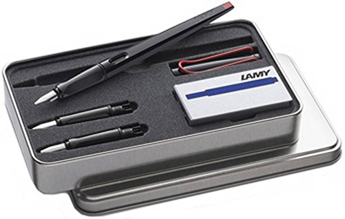 -. Binding : Office Product -. Brand : Lamy -. ClothingSize : One-Size -. Color : Black -. Department : mens -. EAN : 5056036650622 -. Feature : A wonderful calligraphy set for any enthusiastic writer. / Features a LAMY Joy fountain pen with 3 interchangable nibs units and a pack of LAMY T 10 blue ink cartridges. / Plastic; Steel Nib. / Compatible with LAMY T 10 ink cartridges. / Arrives in a stylish metal presentation case. -. Model : 1315427 -. MPN : 1315427 -. PartNumber : 1315427 -. ProductGroup : Office Product -. ProductTypeName : WRITING_INSTRUMENT -. Size : One-Size -. Title : Shiny Black/Red Joy 3 Nib Blue Ink Fountain Pen Set by Lamy