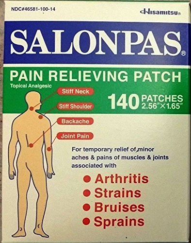Studio : Japan Publisher : Japan Binding : Health and Beauty Product Description Salonpas® is the world's leading medicated pain relieving patch brand. Salonpas® delivers three powerful medicines right at the site of your pain. The patches provide long lasting and effective relief for up to 8 hours. Use up to 4 patches at a time to cover all of your aches and pains. Topical analgesic patches are a great alternative to gels or creams. Patches are portable and convenient, they stay in place and can be worn easily under clothing. 0