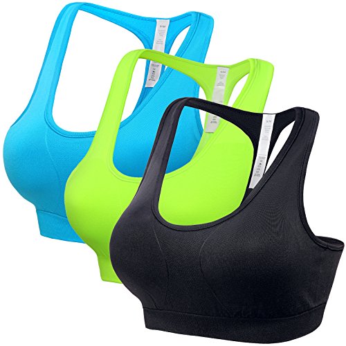 Title : Mirity Women's Racerback Sports Bra - High Impact Workout Gym Activewear Bras Color Black Grey Blue Pack of 3 Size S