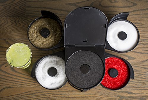 Studio : Tablecraft Publisher : Tablecraft Binding : Kitchen Product Description Prepare your guests' favorite cocktails with Table Craft's 5-tray glass rammer. Convenient and easy-to-use design allows you to add salt, sugar or Lime juice to any standard size martini or margarita glass. Rammer includes sponges to wet the glass and prevents drips and spills behind the bar. Perfect for garnishing martinis or margaritas. 0