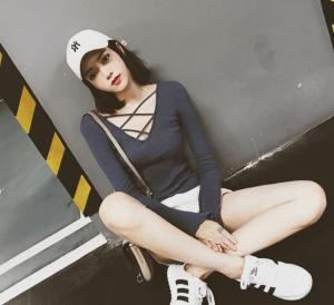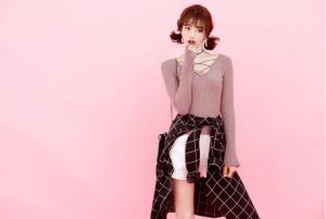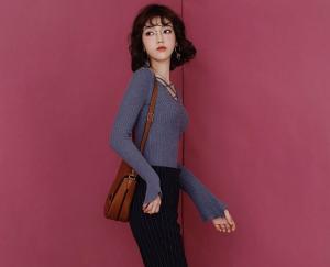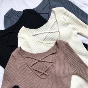 ネックラインのレースアップデザインが可愛いニットセーター♪