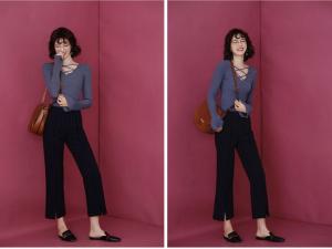 ボトムスによって、キュートにもエレガントにもコーデできる優れもの!