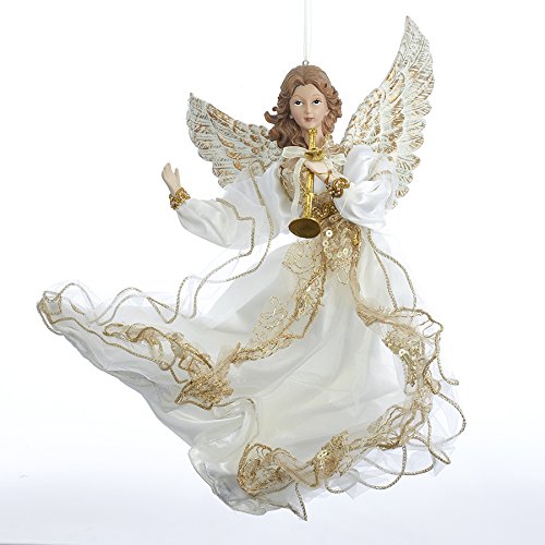 Kurt Adler Ivory And Gold Flying Angel With Trumpet Holiday Ornament