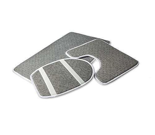 3 Piece Set Dimensions: 1 Bath Mat: 1 Bath Mat (19.29"x31.1" )+ 1 Contour Rug (15.35"x19.29"). 1 lid cover (13.58"x17.51") Note: This Lid Cover Rug works for Round Toilet Lid.