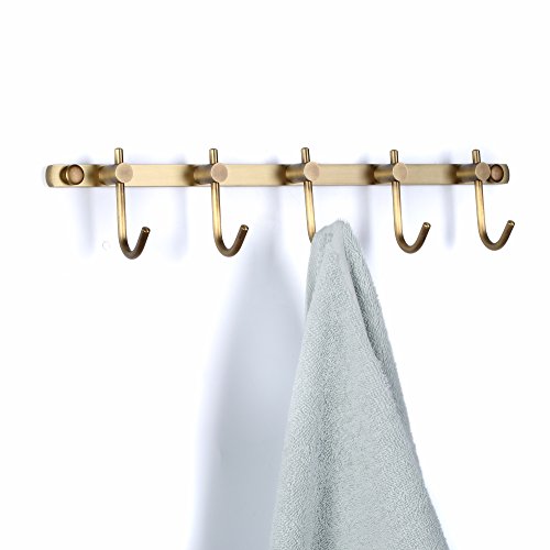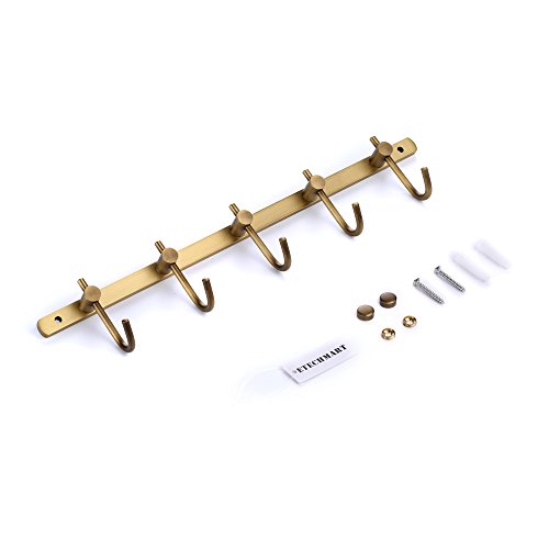ETECHMART Antique Brass 5 Hooks Towel Rack Holder Coat and Hat Hanger Wall Mounted 13"