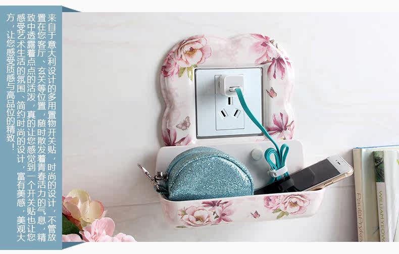 欧式多用开关贴 创意插座贴 开关墙贴保护套带置物篮