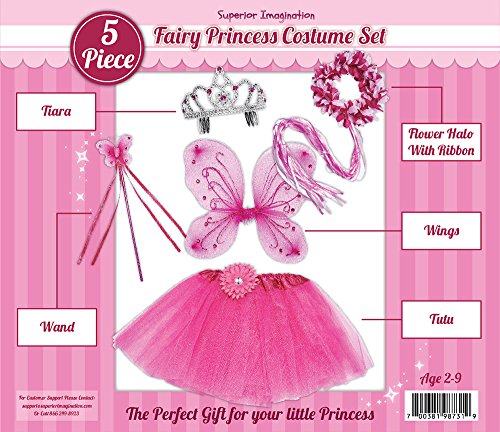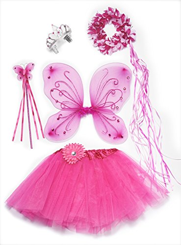 -. Feature : Includes Wings (15" by 14")--Flower Halo With Pink Ribbon Attached --Tiara--Butterfly Wand / Flower Halo With Pink Ribbon Attached / High Quality 4 Layer Tutu And Butterfly Wand / The Perfect Gift For your Little Princess / For Girls Aged 2-8