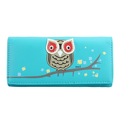 DZT1968(TM)Women Girl Long PU Leather Owl Design Button Wallet Card Holder Money Bag (Blue)