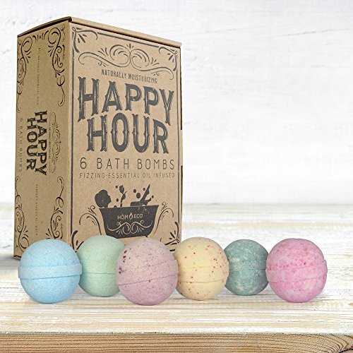HANDMADE FROM THE FINEST INGREDIENTS - Each bath bomb is made with cocoa butter, coconut oil, sunflower oil, and essential oils to achieve desired happy hour scent (agave, lime, citrus, pineapple, coconut, orange, cherries, blackberry, strawberry, mandarin, grapefruit, bamboo, mint, and sparkling champagne)
