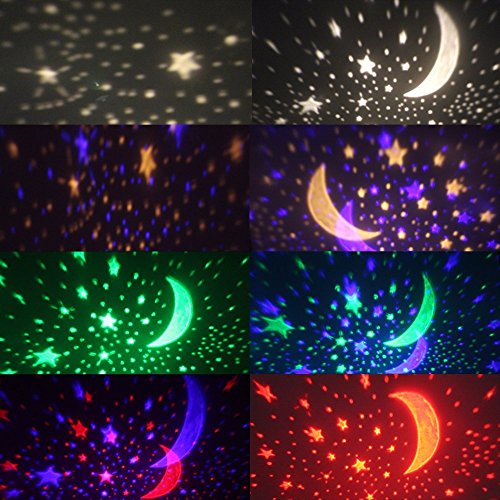 My Little Baby Night Light Moon Star Projector 360 Degree Rotation - 4 LED Bulbs 9 Light Color Changing With USB Cable