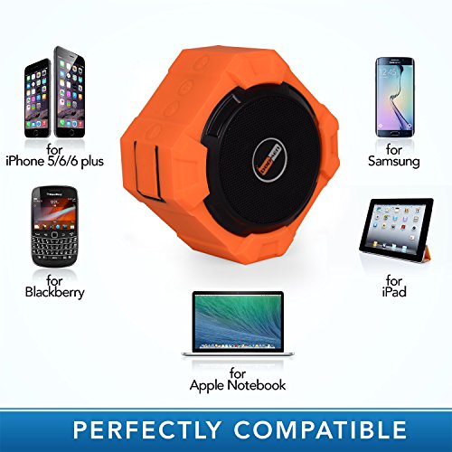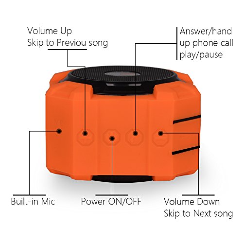 High Quality Crystal Clear Sound: Enjoy your wireless BT speaker as it delivers the rich hi-def bass and sound quality to pacify your love for music. Constructed with military grade materials, our speaker is the tailgater's choice. Unique Design with splash water, shockproof, Sand proof, Dustproof, perfect for the pool, the beach or liven up your shower