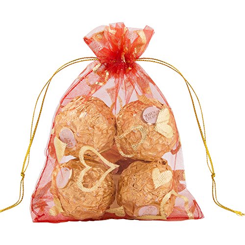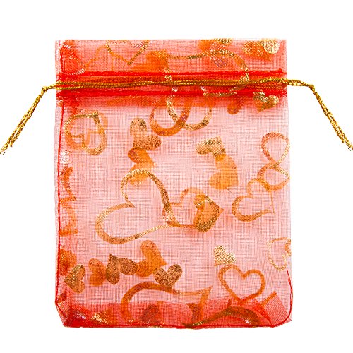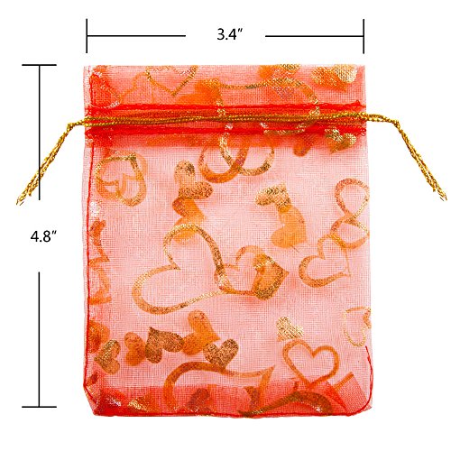 VIVOHOME Heart Drawstring Organza Gift Bags Red 3.5 x 4.8 Inch Pack of 100 for Valentine's Day
