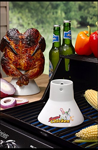 - Inside holds beer, juice, or marinade to add moisture to a bird