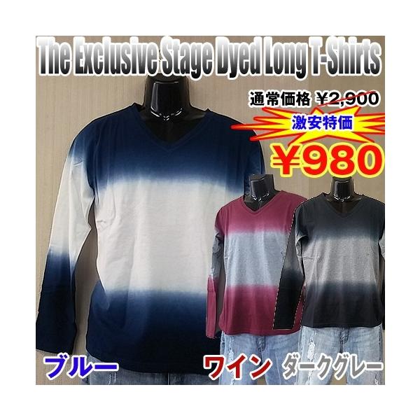 人気メンズブランド「THE EXCLUSIVE」よりこれからの季節重宝するお洒落なロングスリーブTシャツ登場! 通常2980円(税別)のところ、なっ何と!!たったの980円(税別)!! 男の厚い胸板を見せつける、セクシーなVネック。深すぎずネックレスやチョーカーと合わせても綺麗にキマル開き具合です。藍色に近い深いブルーから白へのグラデ。 秋色ワインカラーからグレーへのグラデ。 落ち着いたダーググレーからライトグレーへのグラデ。どの3色も捨てがたい配色の良さが光ります。まもなく秋の訪れ。一枚でさらりとサマになる主役の長袖Tシャツを!!