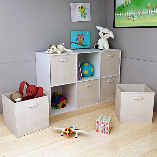 Closet Organizer - Fabric Storage Basket Cubes Bins - 6 Beige Cubeicals Containers Drawers
