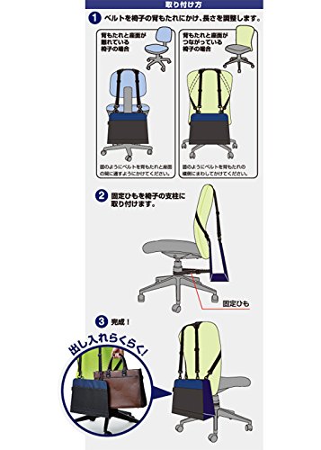 Conventionally when there is no location of the personal luggage in the office there was a dissatisfaction points such as "floor luggage is dirty and put directly into the" "it is difficult to open a drawer and prop up against the desk the luggage." "Place the bag in the back of the chair" is focused on such a background to effective use as a place luggage "space which has not been used until now" on the back of the office chair is the office environment improvement supplies. Attaching is multiplied by the belt of the body to the back of the office chair adjust the length is complete if you stick a string of fixed to the office chair of the post. For the height and mounting how the belt can be freely adjusted it is ready for the office chairs of various shapes height.