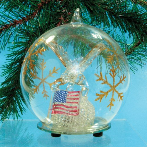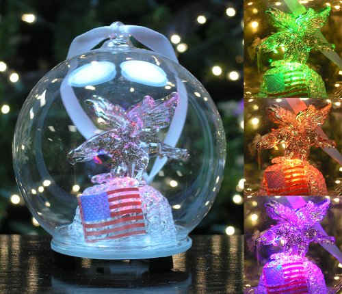 - LED Clear Glass Ball Ornament Eagle with American Flag Figurine