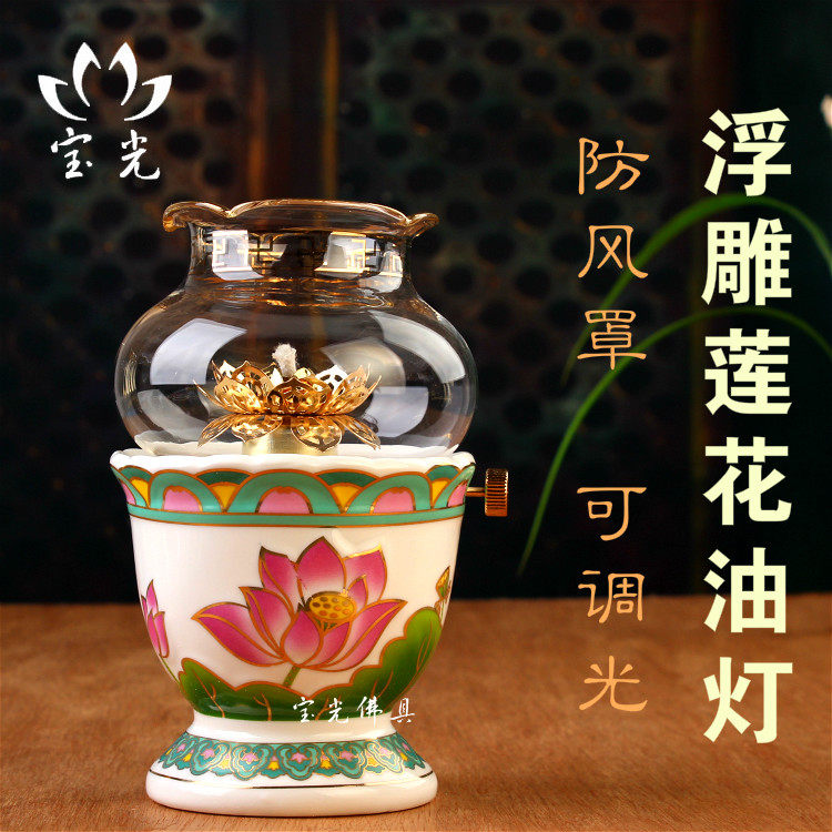宝光佛具供佛油灯陶瓷灯座酥油灯莲花长明灯佛教用品佛前供灯