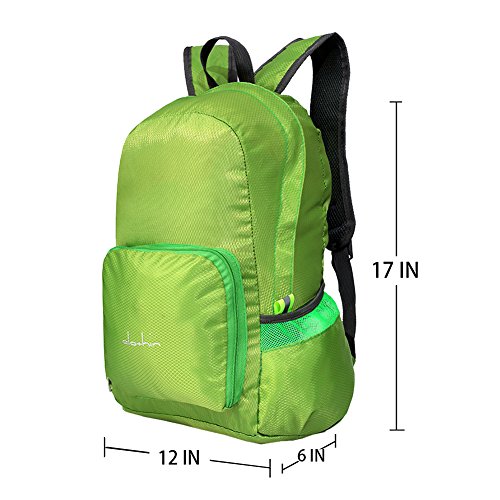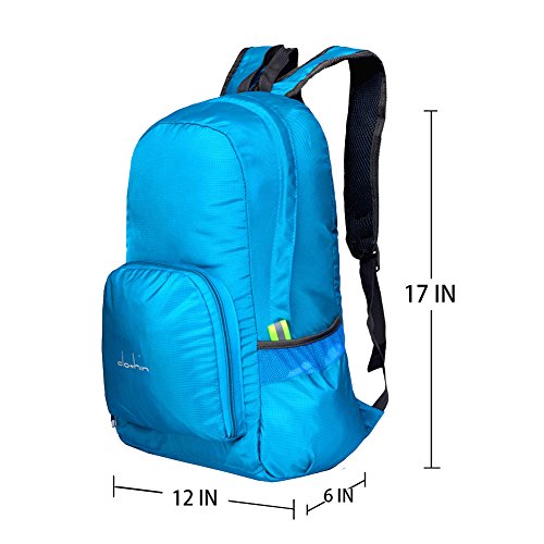 Foldable and compact. Easily fold up into its own front pocket, quickly zip up to a little pouch that fits neatly into your luggage. Unfolds from pocket to backpack when reach your destination. It is a space saver for hiking or camping.
