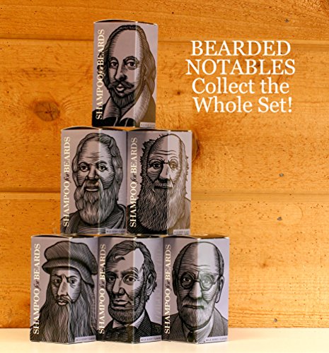 - Made in USA. Specially formulated for facial hair, Celebrating our whiskered heritage with historical figures depicted on the boxes: Leonardo da Vinci, Socrates, Abraham Lincoln, Sigmund Freud, Charles Darwin, William Shakespeare. The perfect gift for the bearded notable in your life