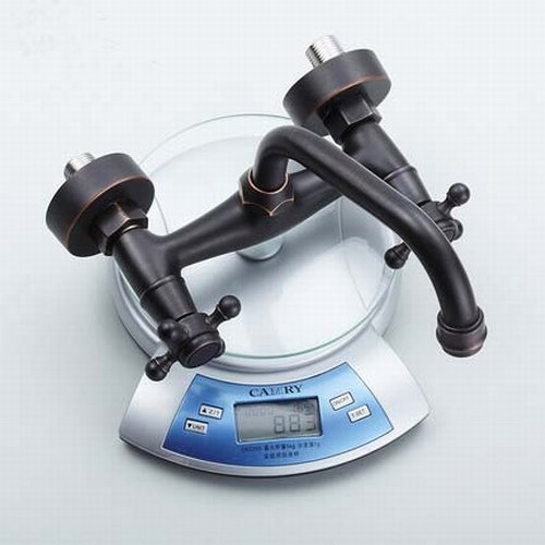 -. Feature : Finish:ORB,oil rubbed bronze / Number of handles:two handles / Drip free cartridge for smooth and long lasting operation / Wall mount bathroom faucet / Pls note Two holes distance lagest 16.5cm(6.5")