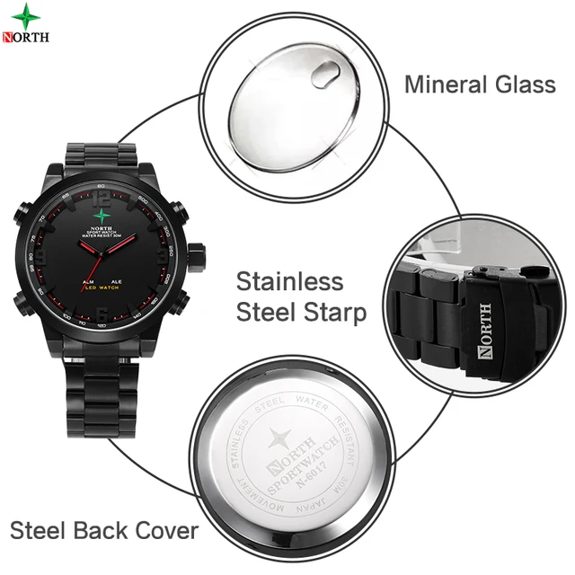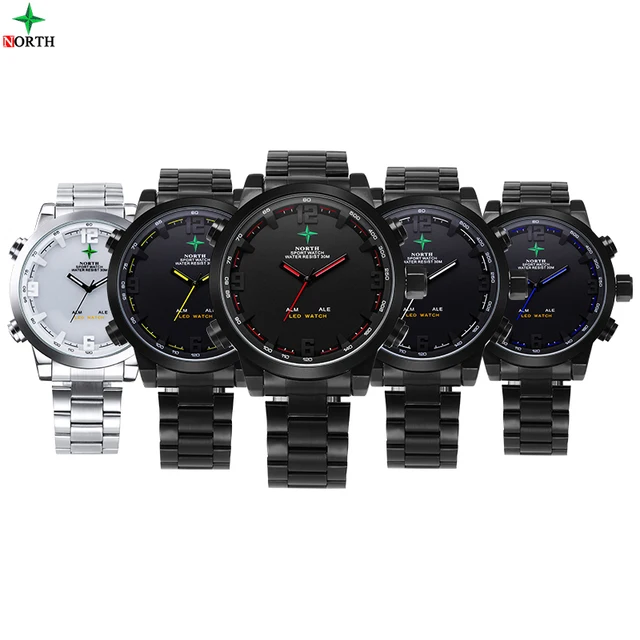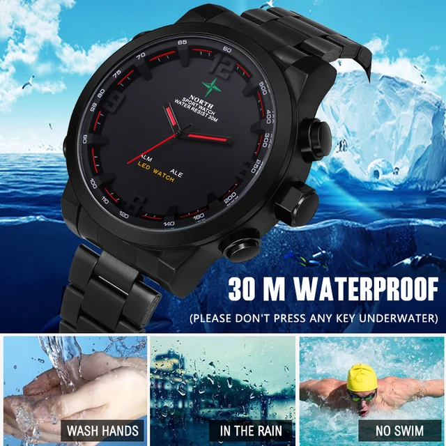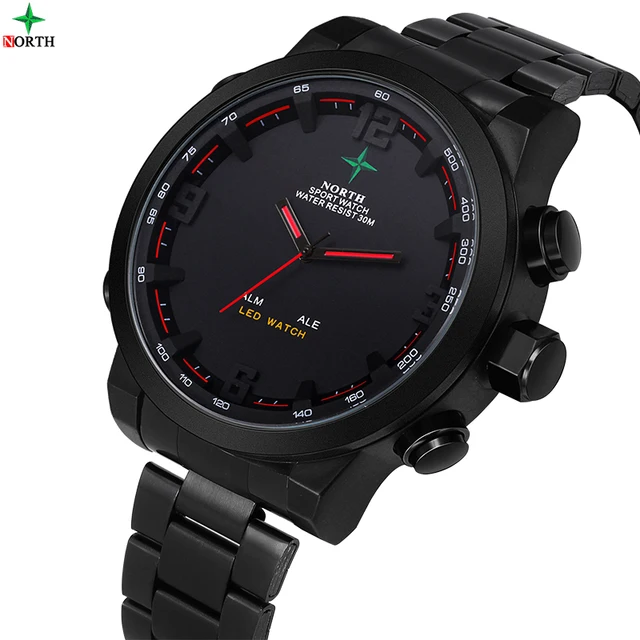 | [해외] 남성 시계 고급 스테인레스 스틸 30 메터 방수 LED 디지털 손목 시계 육군 시계 패션 남성 전자 스포츠 시계 |