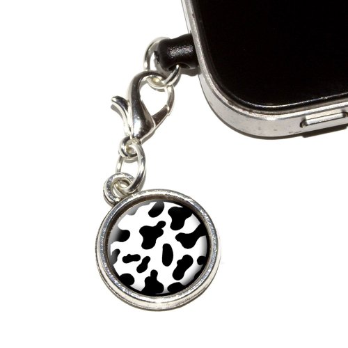 Graphics and More Cow Print Black White Anti-Dust Plug Universal Fit 3.5mm Earphone Headset Jack Charm for Mobile Phones - 1 Pack - Non-Retail Packaging - Antiqued Silver