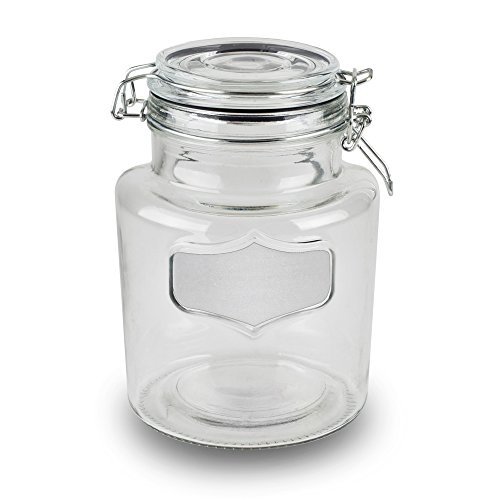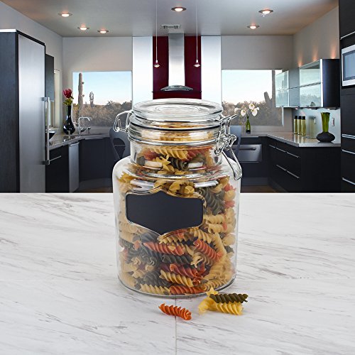 Housewares International 33698 Blue Harbor Glass Clip Framed Chalkboard Jar, 43 oz, Clear