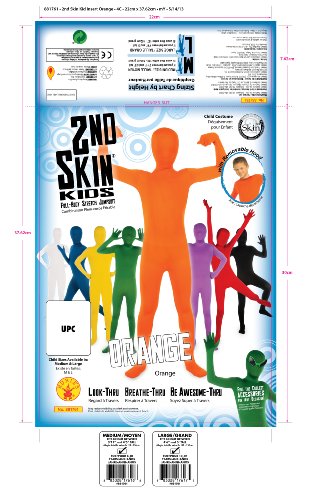 - Feature : Rubie's Second Skin jumpsuit body suits can be used in lots of different ways / See through, breathe through face covering / Look for matching adult second skin suits for a fun family costume look / Child's size Large fits most 8 to 10 year old olds, 56" to 60" tall with a 31" to 34" waist and 35" to 39" hips / Since 1950 Rubie's' Costume Company has been making dress-up fun with costumes and accessories for the entire family