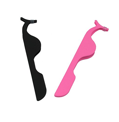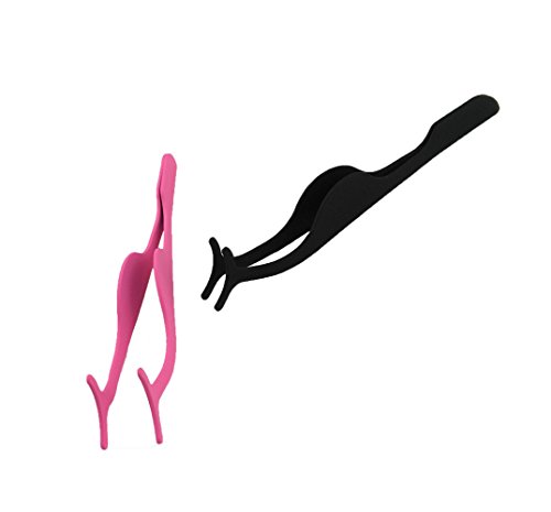 yueton Pack of 2 Stainless Steel False Eyelashes Extension Applicator Tool Fish Tail Clip Auxiliary Clip Tweezers Nipper Tool (Hot Pink+Black)