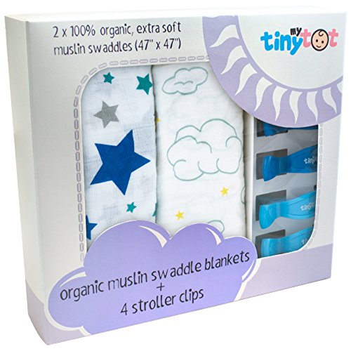 -. Title : Organic Swaddle Blanket & Stroller Clip Set - Extremely Soft - Use As a Swaddle, Nursing Cover or Stroller Blanket - Great Baby Shower Gift for Boys!