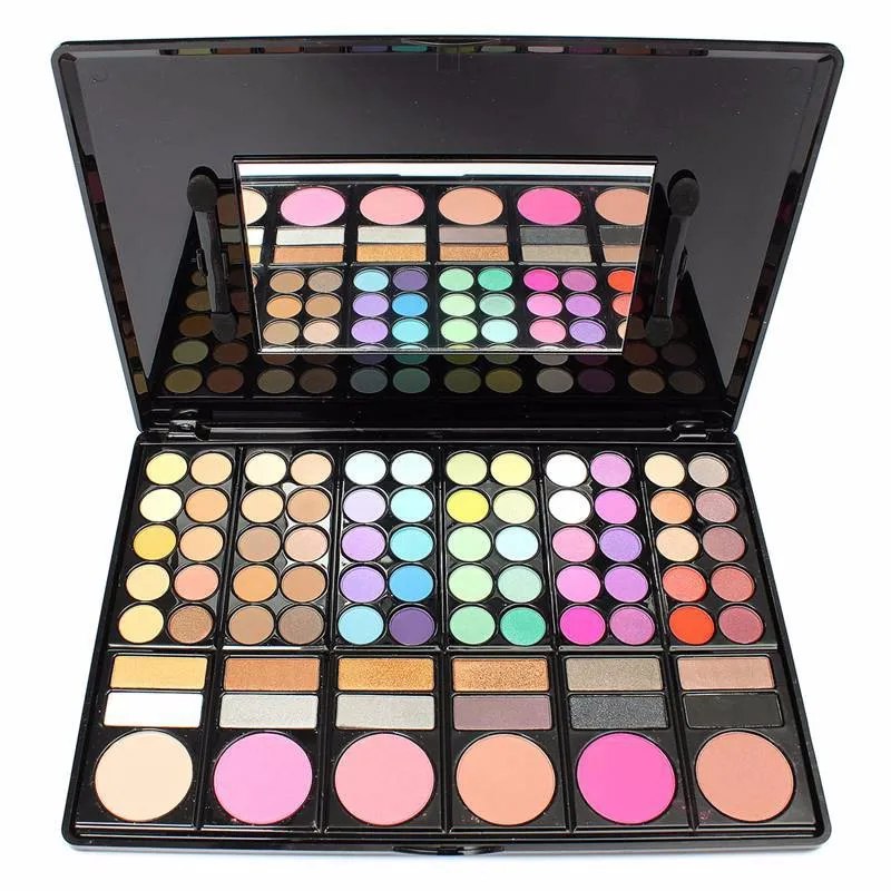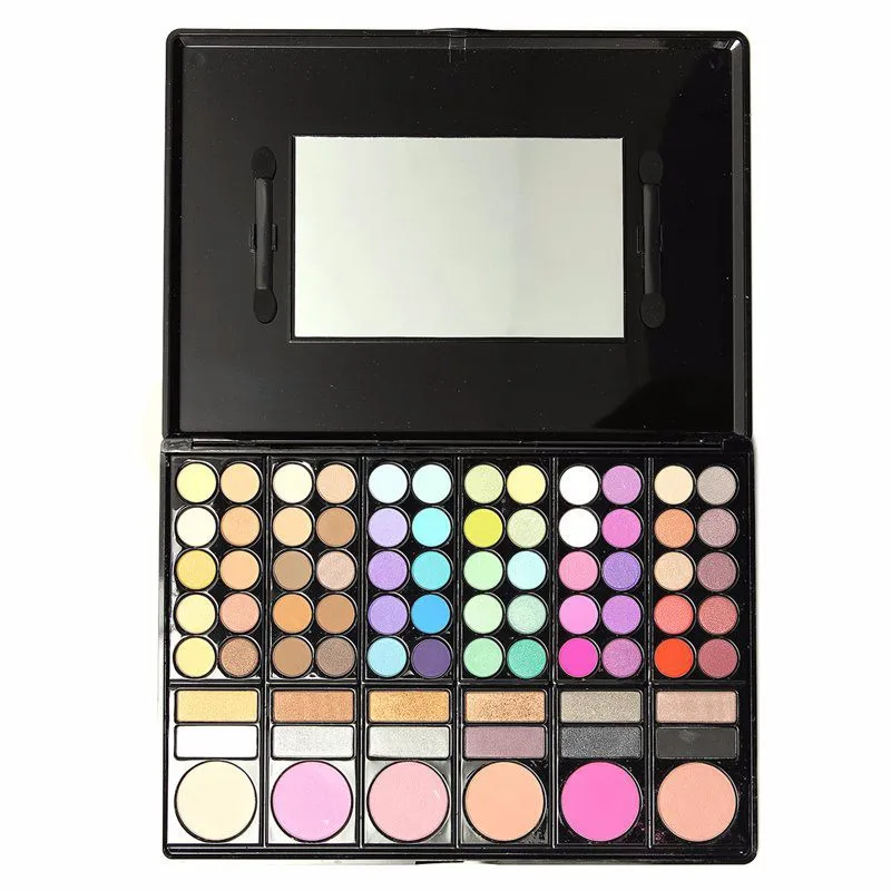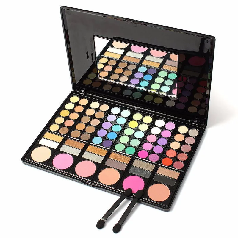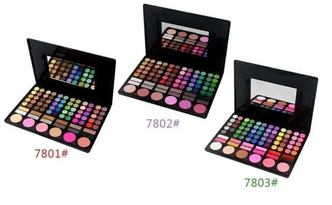 Package include:1 set: 78 Colors Palette, including 60 colors eyeshadows, 12 colors lip gloss, 3 colors bronzing powder, 2 colors brush