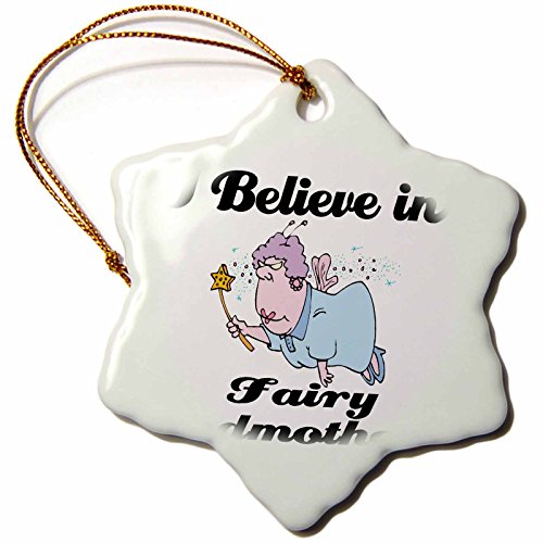 3dRose orn_105149_1 I Believe in Fairy Godmothers-Snowflake Ornament, Porcelain, 3-Inch