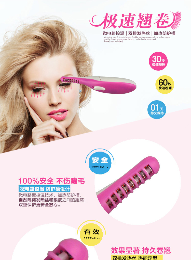 Portable hot brush heated eyelash curler%2C an electric heating eyelash curler%2C can perm eyelash into a beautiful curling shape.