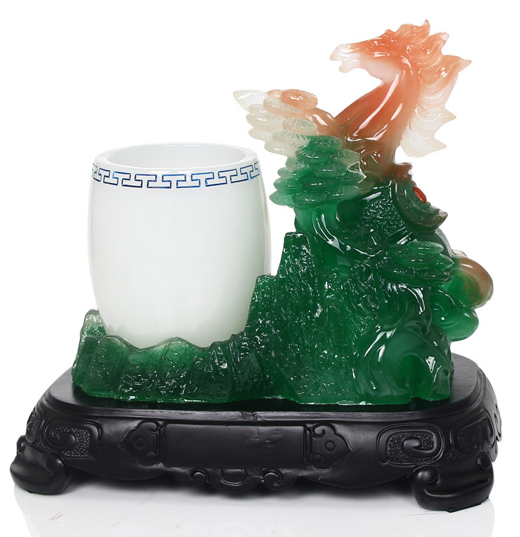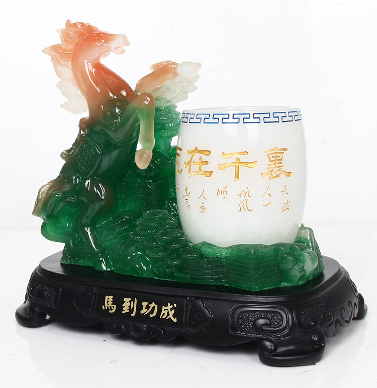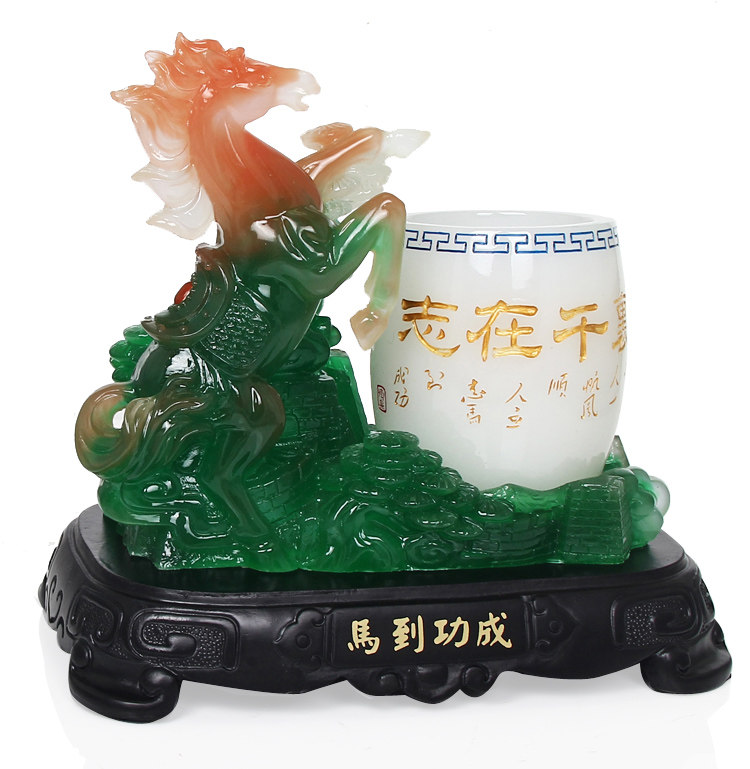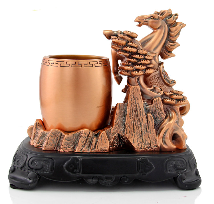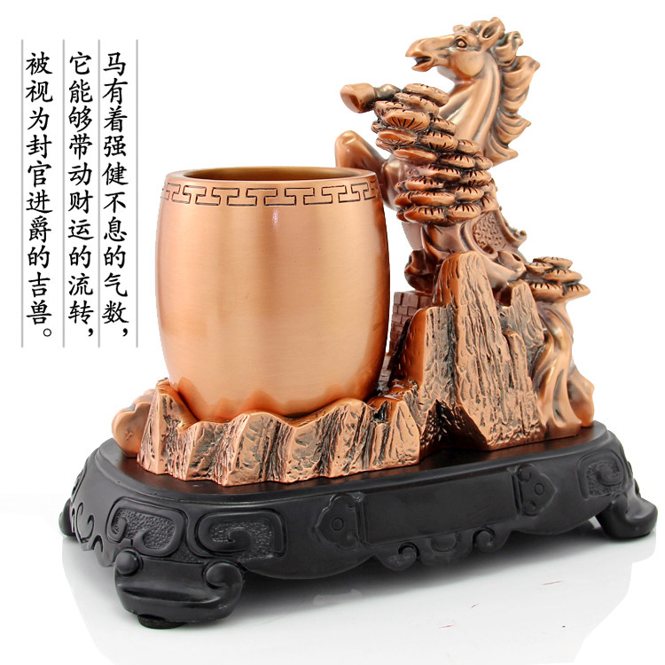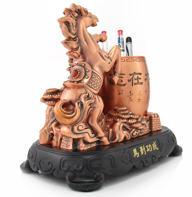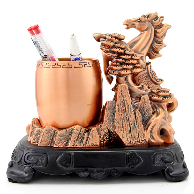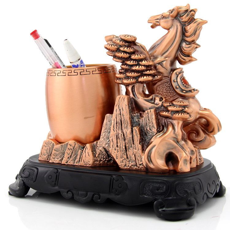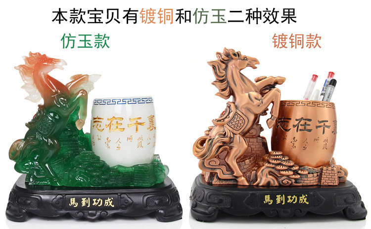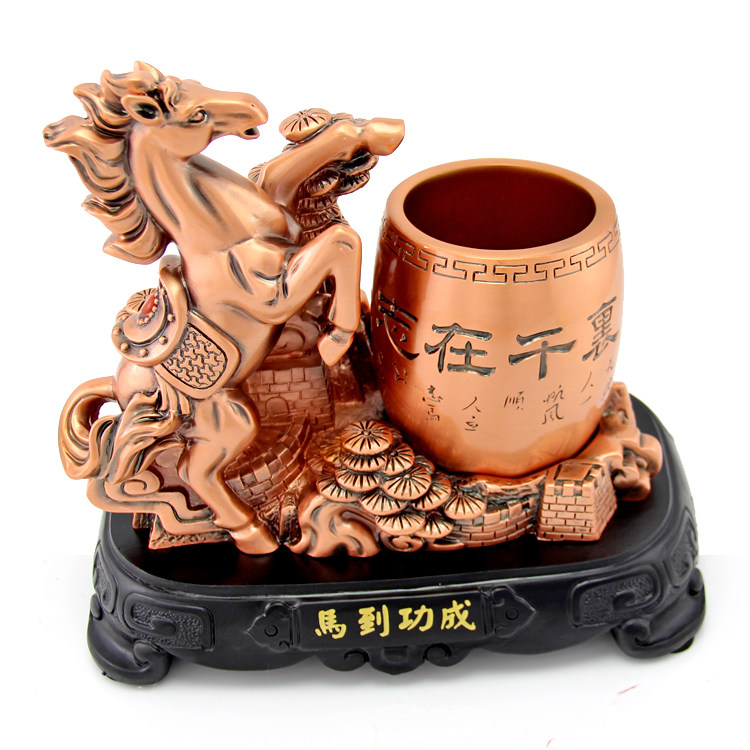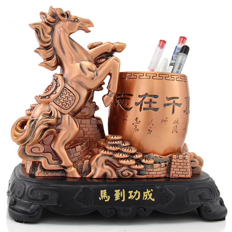 马到成功笔筒创意 办公室实用工艺品 中式创意办公室马笔筒
