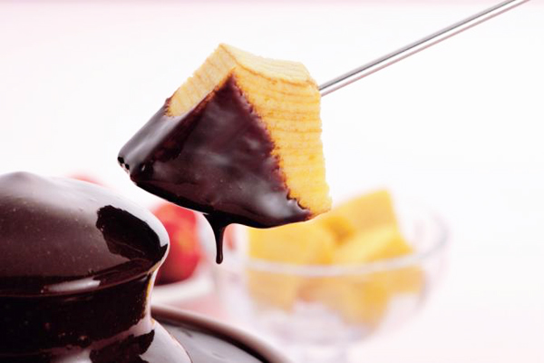 ●タワーから流れるチョコレートシロップにフルーツ等、お好みのものをつけてお楽しみください