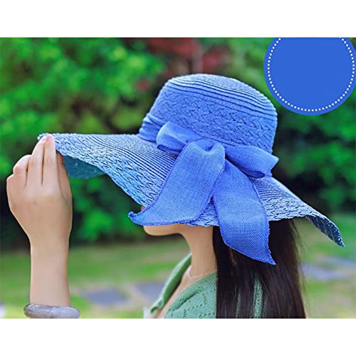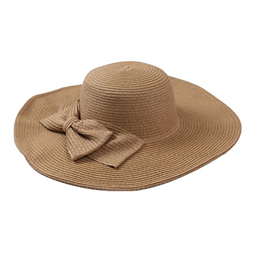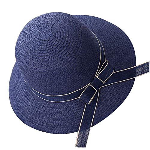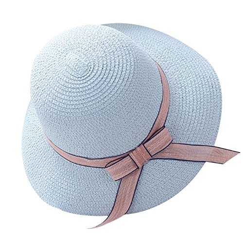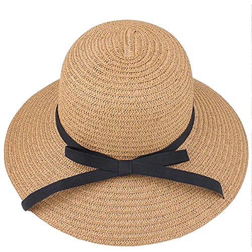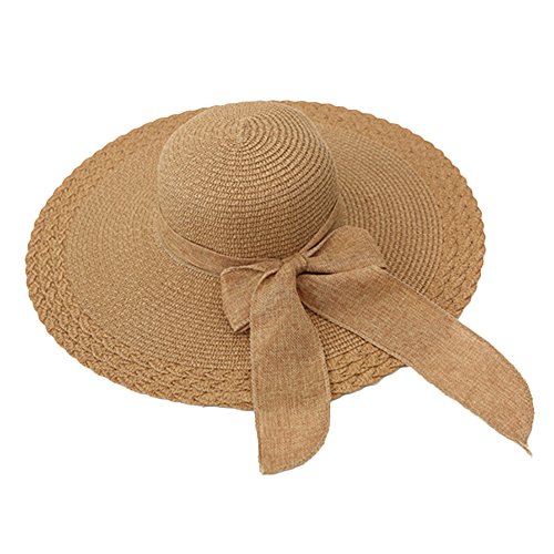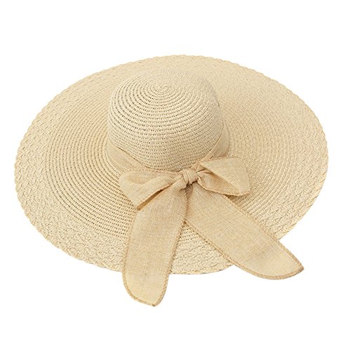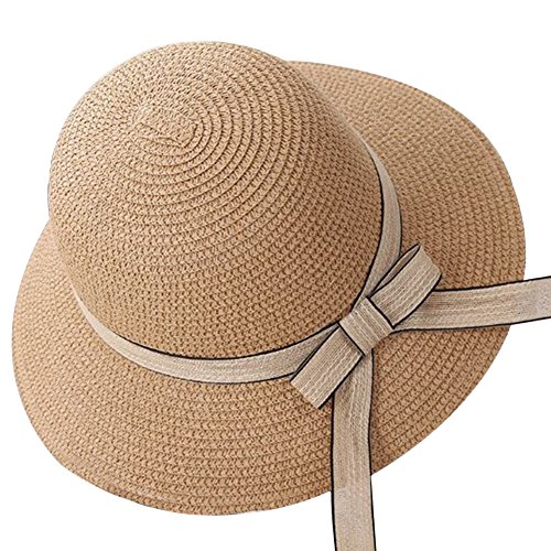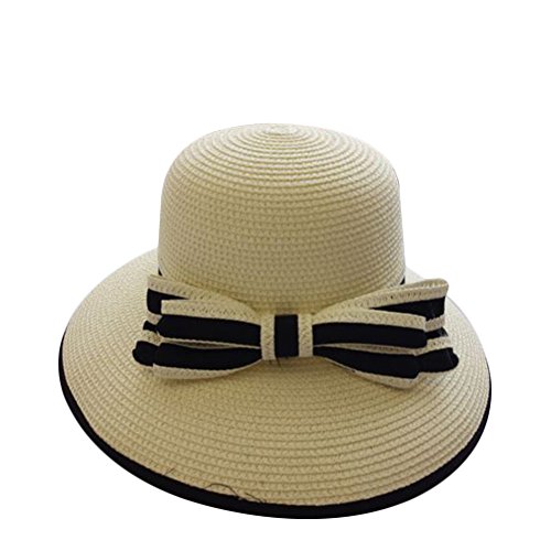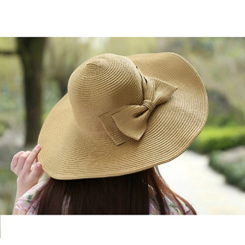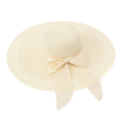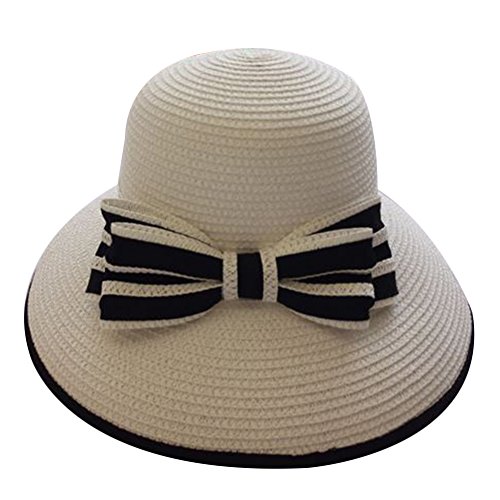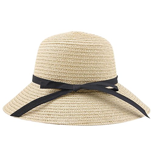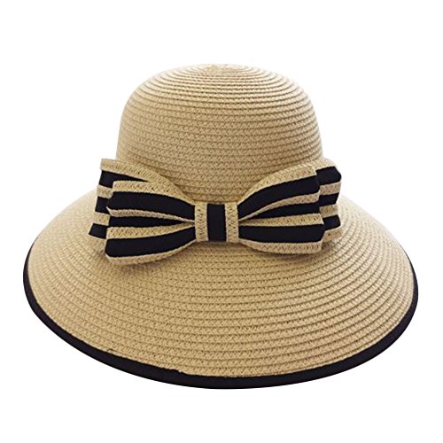| diffstyle Women Bowknot Straw Hat Packable Wide Brim Sun Hat Summer Beach Cap |
